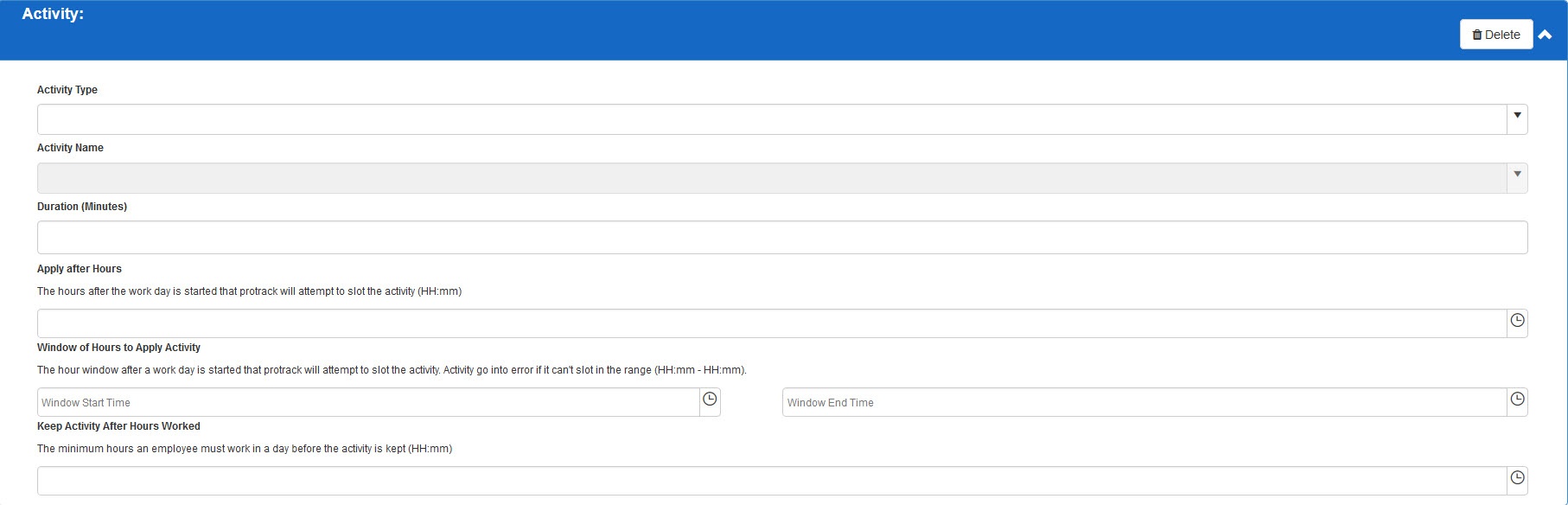 Enter a window of time that ProTrack will try to apply the activity in the day by clicking