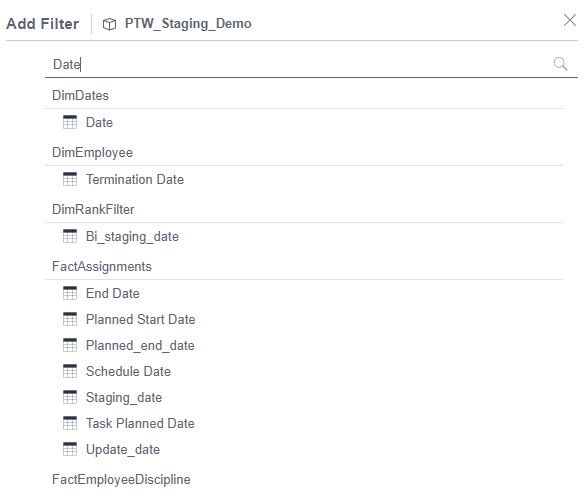 You can filter by most data points from this menu. In this case, we would like to only see data from 2020 and 2021. So, we will search Date and select Date from the list.